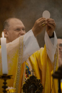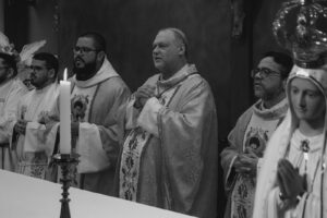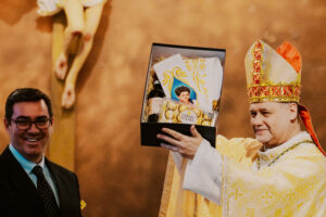 A Santa Missa solene foi presidida por Dom José Negri, PIME, bispo diocesano de Santo Amaro, e contou com a participação de padres, religiosos e centenas de fiéis, além da apresentação especial do Coral Diocesano de Santo Amaro, que abrilhantou a celebração com canto litúrgico solene.