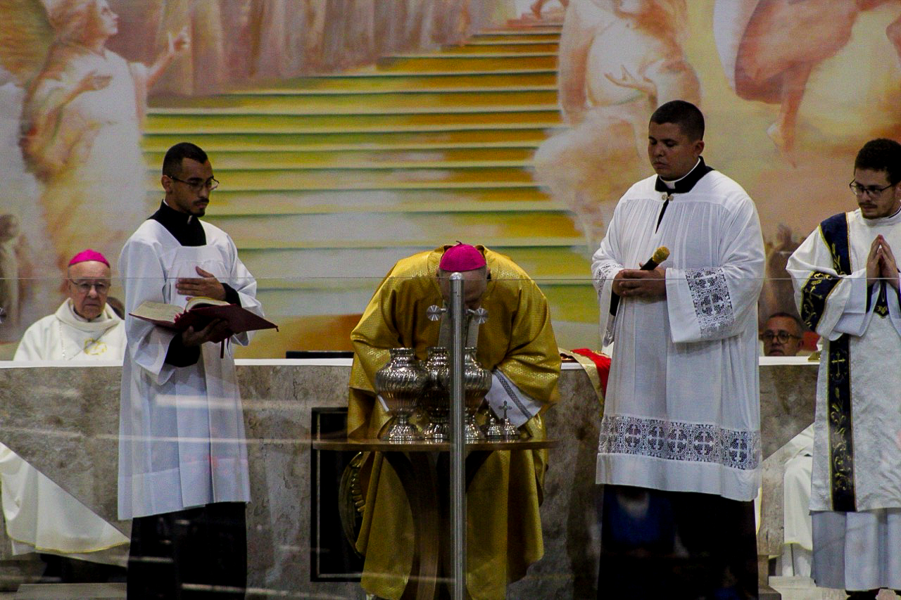Missa dos Santos Óleos é celebrada no Santuário Mãe de Deus com todo o clero, religiosos e fiéis da Diocese de Santo Amaro